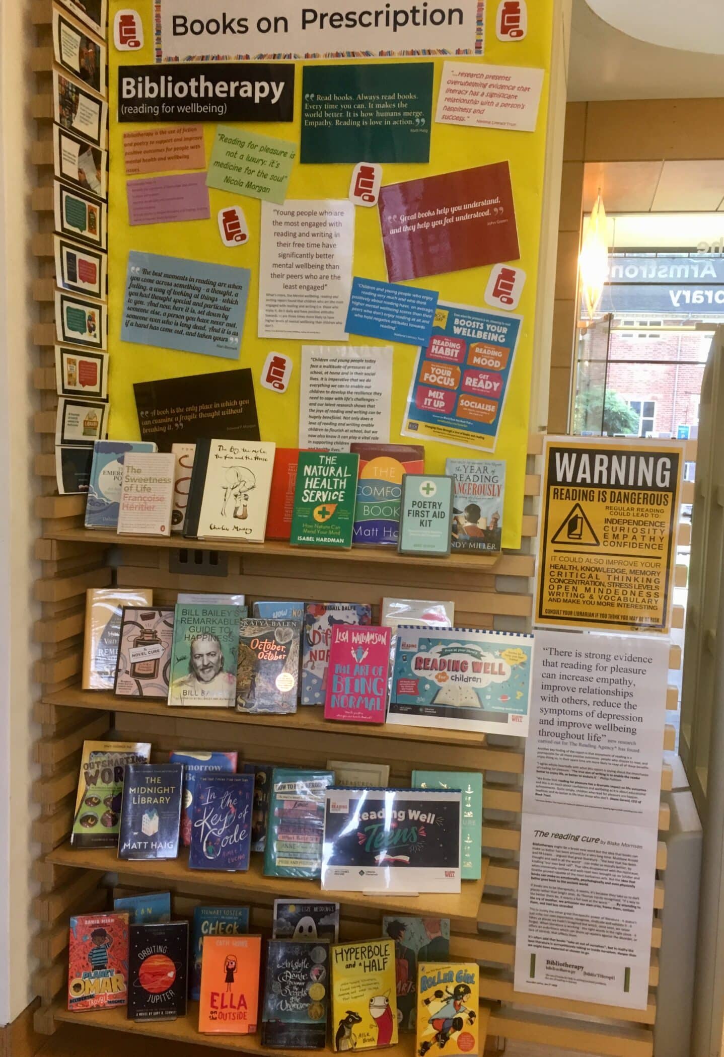 The Library celebrated the benefits of reading for pleasure to wellbeing and mental health with a display of uplifting reads, comfort reads, poetry first-aid and reading cures, and information about bibliotherapy. The display also highlighted the Library’s collection of the books recommended in the Reading Agency’s ‘Reading well for children’ and ‘Reading well for Teens’ booklists. The latter list is now available for pupils to access in the Health Centre.