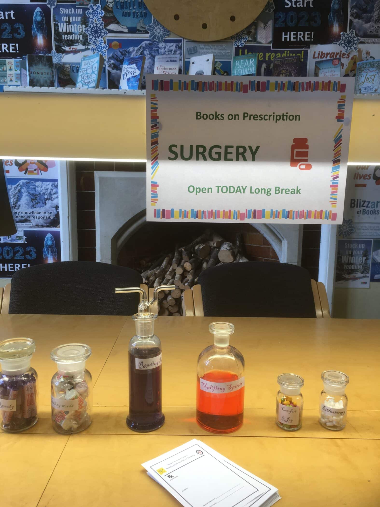 Patients enjoyed visiting the library for this unique experience. The array of sweet medications on offer (Healing Words, Bibliotherapy, Reading Remedy, Comfort & Joy, Zest for life, Library tonic, Elixir of Hope) were also very well received in addition to the tailored prescriptions!