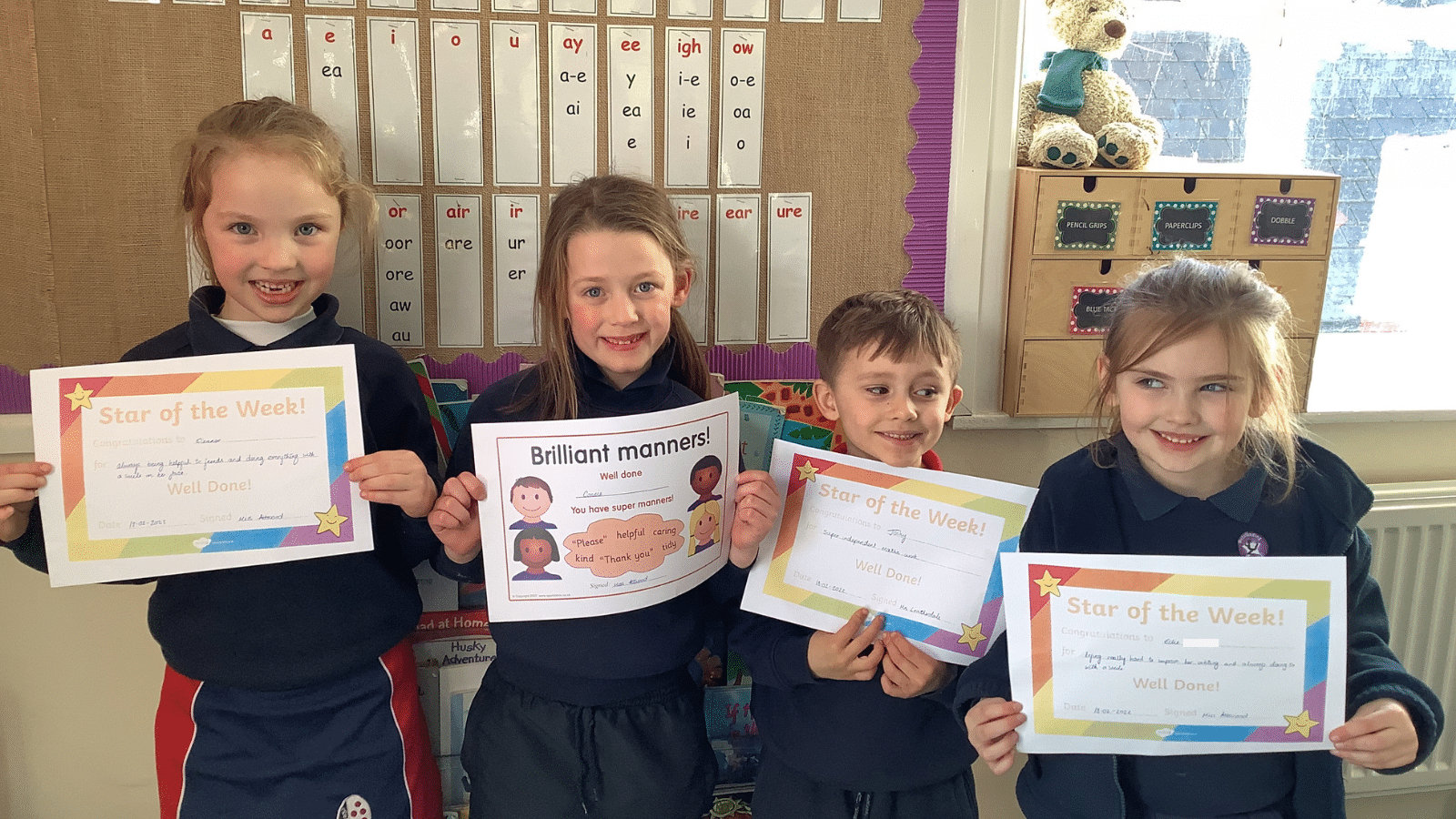 In Year 1 Star of the Week certificates were awarded to: Elise, Ellie M, Joshua and Eleanor. Elise produced some lovely writing in English. Ellie M was praised for trying really hard to improve her writing and always doing so with a smile. Joshy has impressed with some super independent maths. Mrs Leatherdale and Miss Atwood have been bowled over by how helpful Eleanor is to her friends and how she does everything with a smile. Well done to Connie whose super manners earnt her the Brilliant Manners certificate for Year 1!