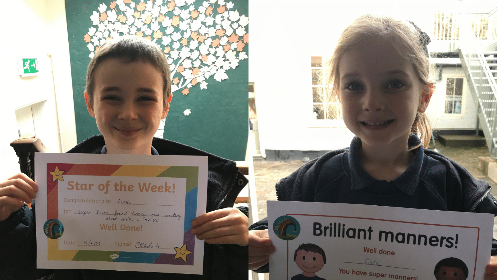 Well done to our Pre-Prep super stars. This week in Year 2 Harry, Adelyn, Austin and Elsa were awarded Star of the Week. Harry has had a superb half term and has really impressed Mr Marsland. Adelyn’s reading has been excellent all week. Austin shared some super facts during a creative writing session on castles in the UK. Elsa created a super character description as part of her ‘Who Am I‘ work. Orla was the recipient of this week’s Brilliant Manners certificate!