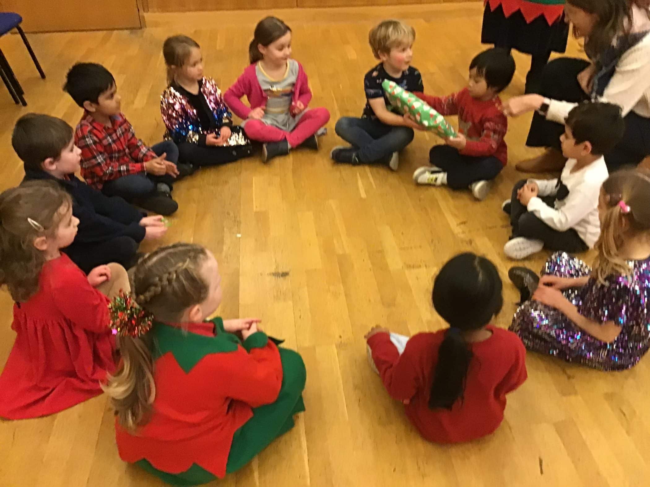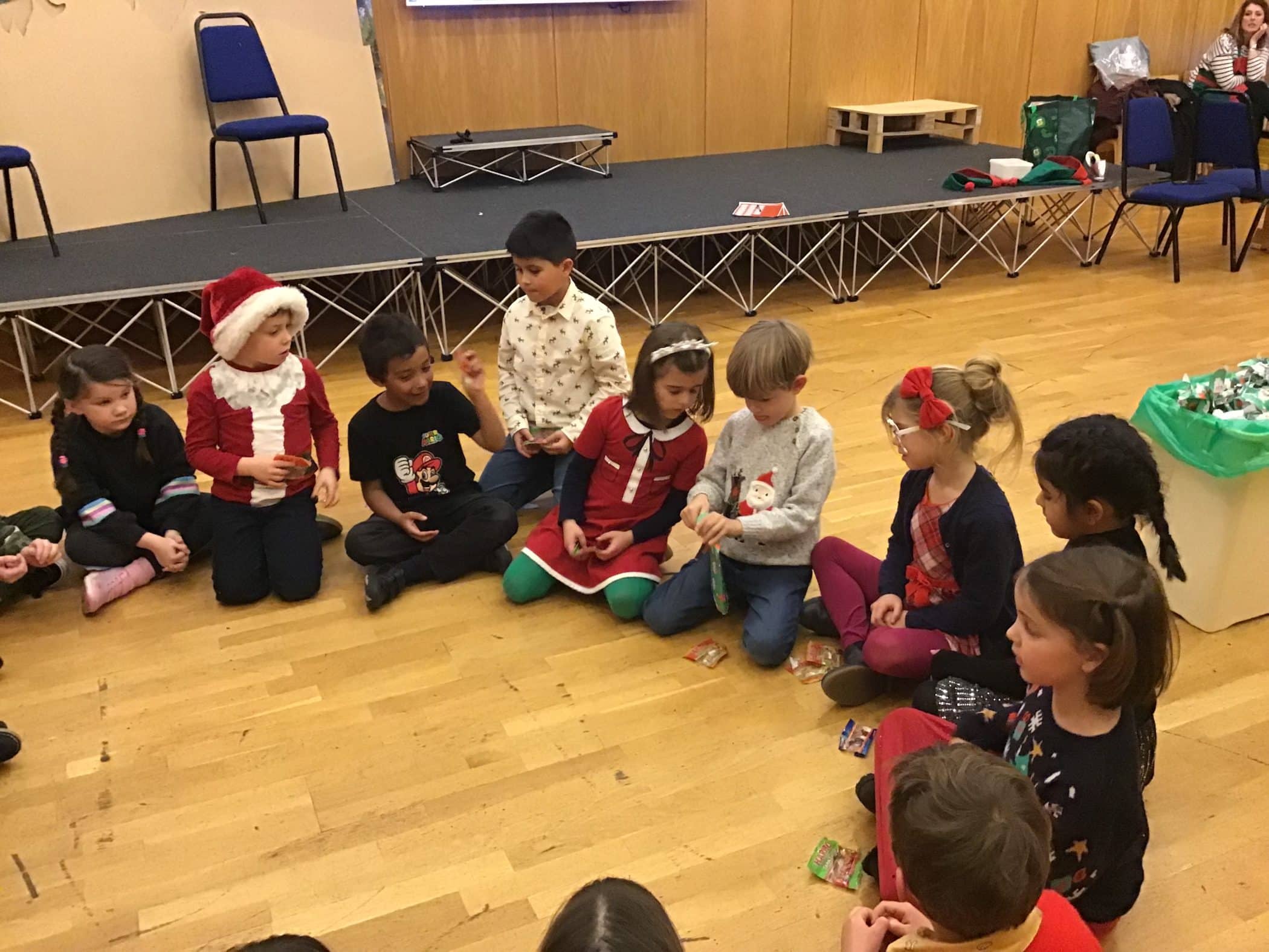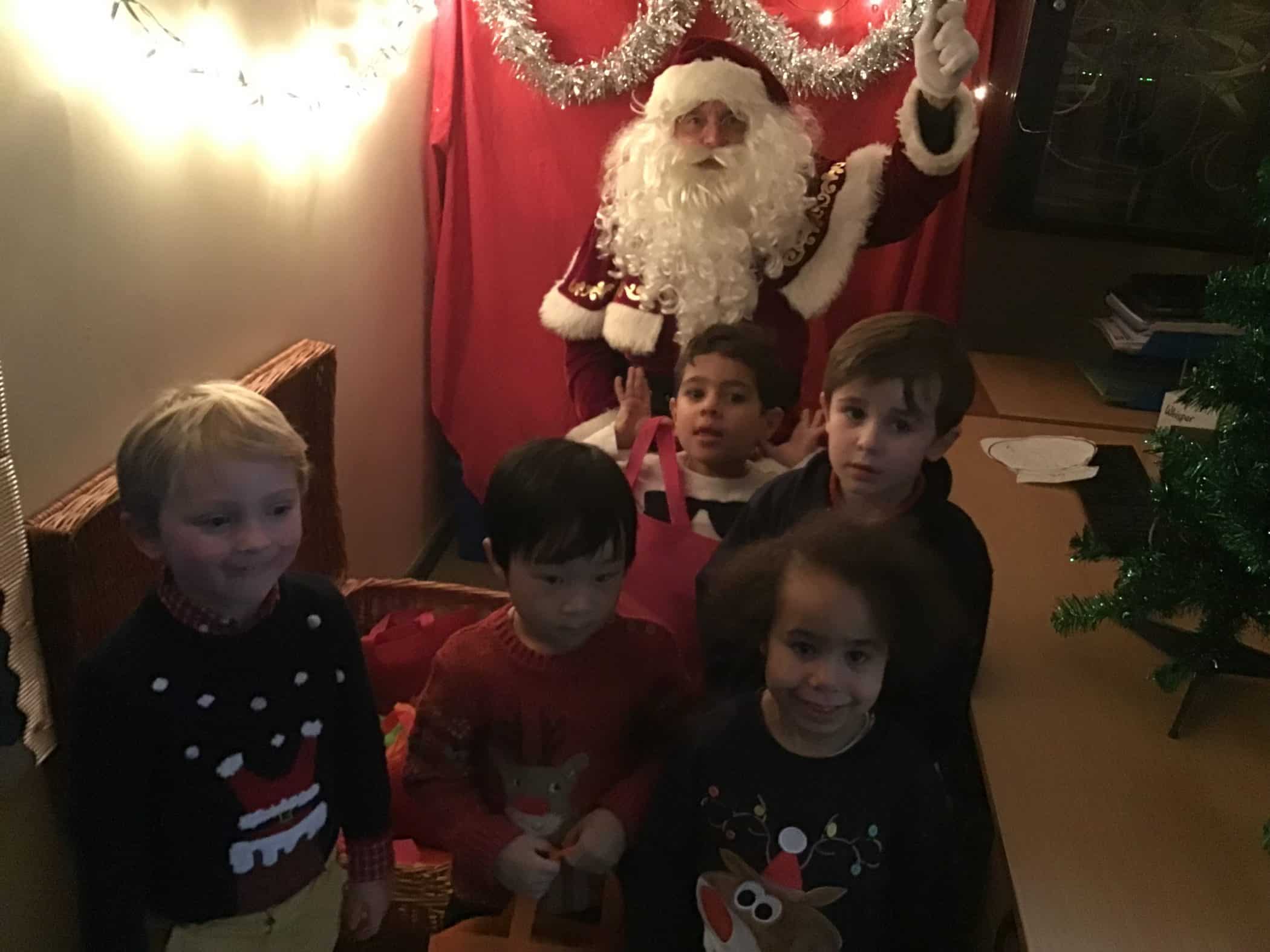 After a busy morning making cards, calendars and decorations, the children were treated to a Christmas party, run by the King’s St Alban’s Parent Social Group. The afternoon included lots of games and dancing, there was even a delicious Christmas tree biscuit too, to refuel everyone after lots of running around! The children tried their hardest to pin the nose on Rudolph, some of them managed a very accurate attempt! Parcel the parcel is always a firm favourite, and the children were keen to be the last one to unwrap the prize! In between party games, everyone had a visit to Father Christmas. He was in a special grotto and each child went in to tell him that they had been very good (!) and to share their Christmas lists. Father Christmas listened carefully to all their requests and it’s looking to be a popular year for scooters. He had even brought everyone a bag full of treats.