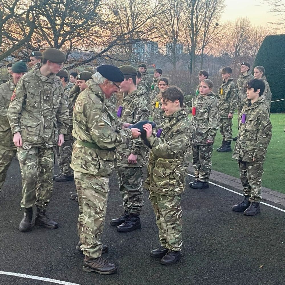 This year, Colonel Stamford Cartwright kindly agreed to be our Reviewing Officer. He awarded our newest recruits their berets, which signified the completion of a term of recruit training and the beginning of their journey in the Army and RAF sections.