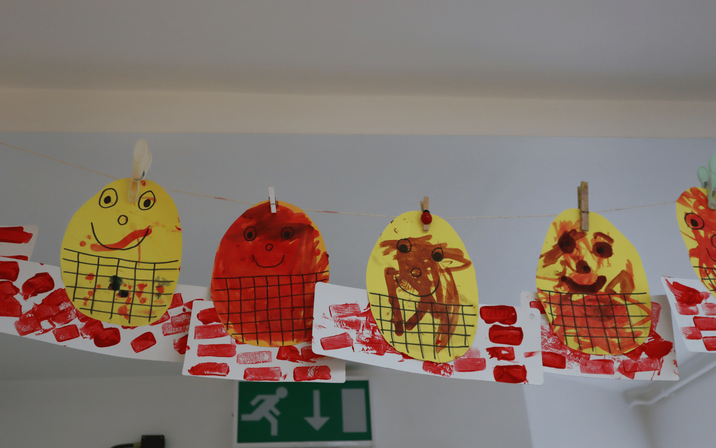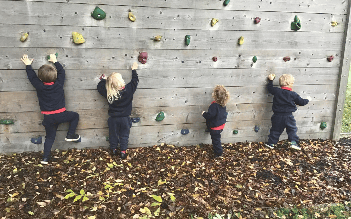 On Monday Humpty Dumpty visited Kindergarten 1! Children made their own Humpty Dumpties out of eggs. They then had plenty of fun watching their eggs “fall” off the wall they had constructed. Always keen to problem solve, the children then attempted to build Humpty a safer wall to sit on, using Duplo bricks. Taking advantage of Kindergarten’s location, the children headed down to the bottom field to have a go at climbing the traversing wall. All of the Kindergarten staff were relieved to report that no major falls occurred! In circle time, staff and children talked about how Humpty Dumpty was feeling before and after his big fall.
