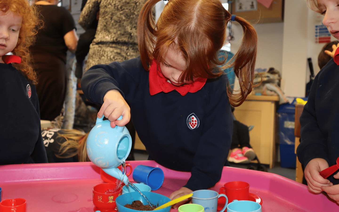 On Thursday, the children were keen to put the kettle on when they welcomed Polly to Kindergarten. The children loved experimenting making drinks using the kettle, cups, saucers and teaspoons! Their creations looked almost good enough to drink….