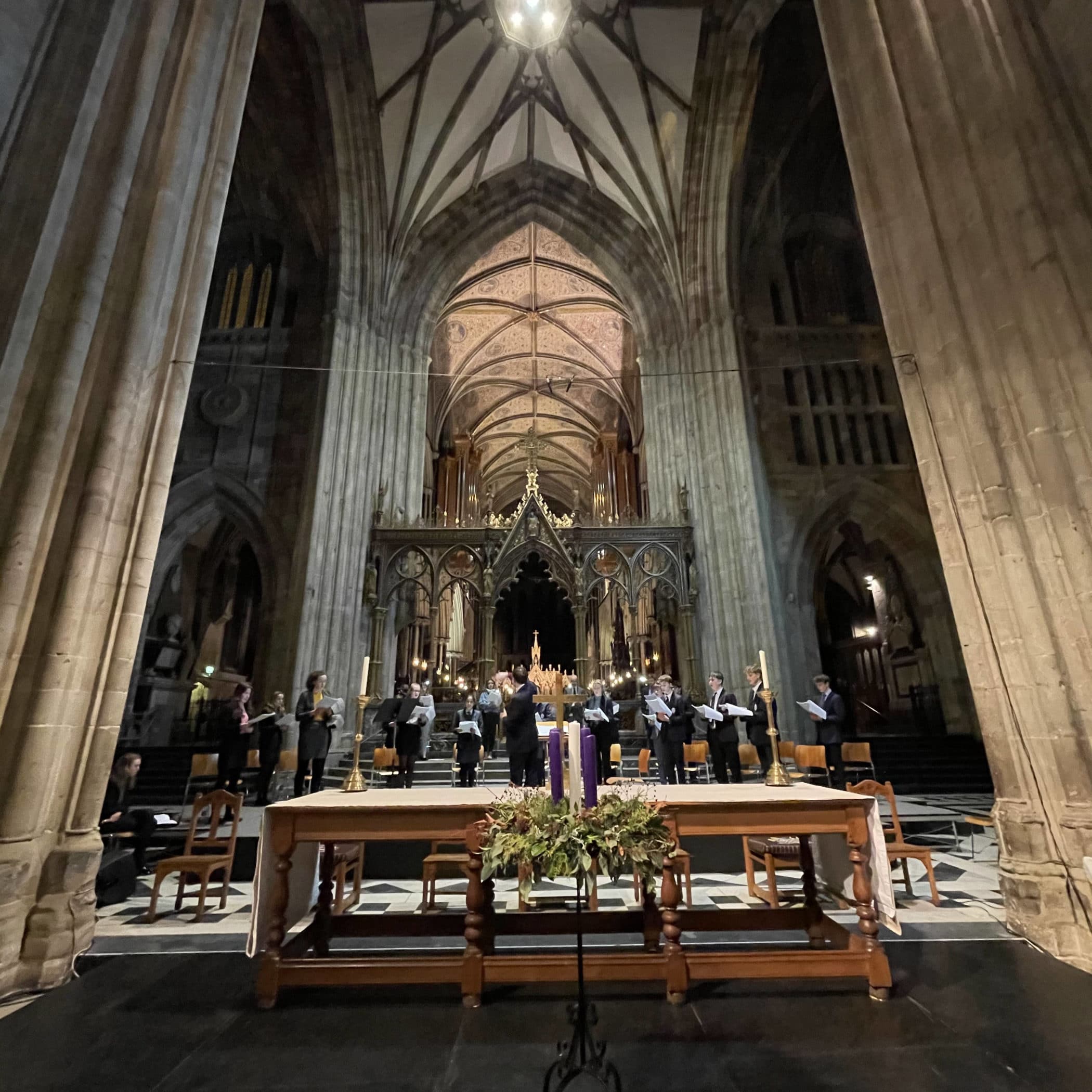 The Chamber Choir under the direction of Assistant Director of Music, Christopher Allsop, was unable to rehearse during the recent lockdown. It is a great credit to them that they were able to learn five carols to perform at the service in just a week. The service began with the procession of the Upper Sixth King’s and Queen’s Scholars before the traditional solo verse of Once in Royal David’s City sung in the Quire by Ella. Covid regulations prevent the singing of hymns by the congregation so those present had the unusual experience of listening to the remainder of this carol as well as later performances of Hark! the Herald Angels sing and O come all ye faithful. The service following the traditional pattern of readings given by pupils and staff interspersed with carols from the Chamber Choir. Particular highlights were an arrangement of Silent Night with Upper Sixth Music Scholar Anna F adding the evocative flute solo and a spiritual-inspired carol called No room, no room by Ruth Gray. Both of these pieces are the basis for a virtual choir collaboration with a school choir from Worcester, Massachusetts, USA. These videos are currently being edited and will be released towards the end of term.