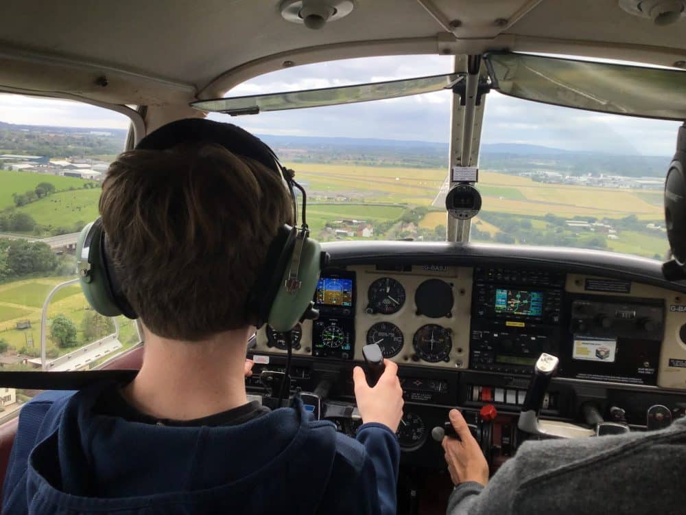 Despite the cloudy weather, visibility was excellent, providing clear views all the way to the centre of Birmingham from a height of about 3,000 feet over Worcester. Each pupil observed the primary effects of the main flight controls, which are common to all fixed-wing aircraft. They also gained valuable experience in navigation, successfully identifying and navigating around the main towns in the Worcester area before returning safely to the airfield.