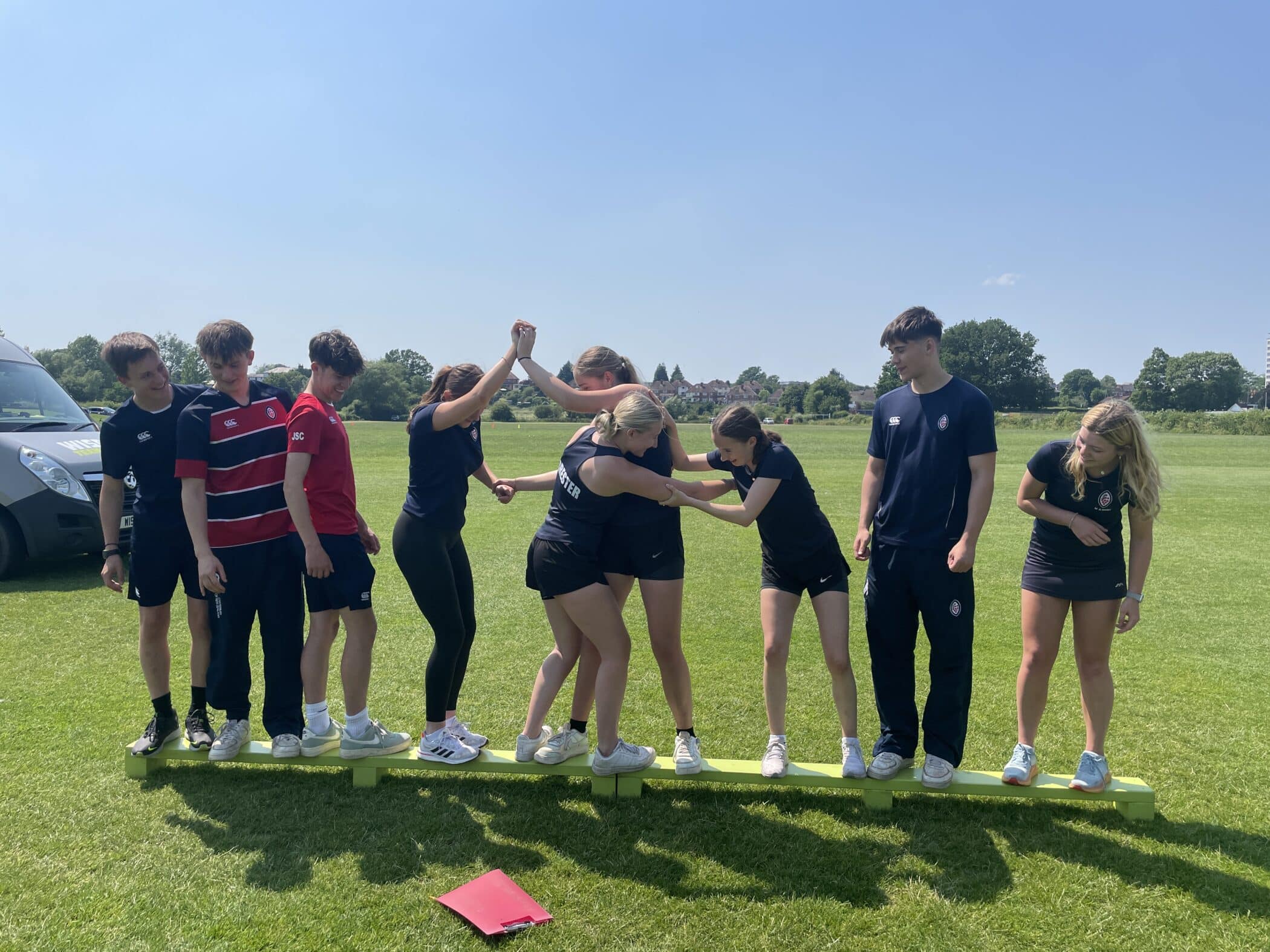 Our Wise Up team building afternoon took place on a gloriously sunny afternoon where the eighteen Heads of Houses and twenty-six Monitors enjoyed the opportunity to take on leadership roles in a number of group team building activities. We divided ourselves into five groups consisting of three groups of monitors and two groups of Heads of House, where we got to choose which activity we took part in and were trusted to rate ourselves out of five in a number of areas. I really enjoyed being able to work in a team with people that I hadn’t had an incredible amount of contact with due to taking completely different A-level subjects and being in different houses, this allowed me to get to know a greater number of Monitors more closely and understand their leadership styles for future duties. Our group first took part in a challenge called ‘The Pyramid’ which required us to stack pieces of a pyramid from one pole onto another in a specific order. This first task taught us to plan before launching ourselves into the activity and correctly read the instructions provided. We managed to complete the task before realising that we had re-stacked the pyramid on the completely wrong post and had to start again. With this newfound trust in planning, we made sure to thoroughly plan the following activities which allowed us to complete many of them in one try, making us incredibly proud of ourselves as a group. My favourite activity we undertook as a team would have to be ‘Stepping Stones’ as I think that is when we really worked together as a team and overcame challenges by trusting and supporting each other as we placed down stepping stones to move from one area to another. Overall, I thoroughly enjoyed the team building activity day with Wise Up and believe that it brought us closer together as a group of Monitors and taught us to share responsibility and contribute ideas to reach a shared goal.