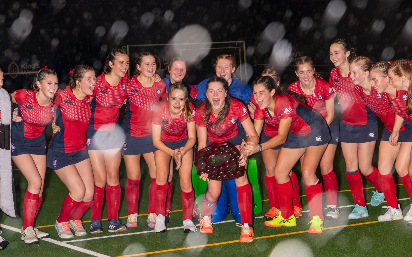 Despite RGS defending short corners effectively, King’s relentless pressing kept their opponents under constant pressure. Shortly after half-time, RGS pulled a goal back, but King’s remained calm, trusting their game plan and continuing to build play from the back. The defence, led by some outstanding tackles and disciplined play, denied RGS any further opportunities. In the closing minutes, King’s controlled possession brilliantly, securing a 2-1 victory and finally lifting the Severn Shield. The team celebrated joyously with friends, family, and the wider King’s community, even as the rain poured down.