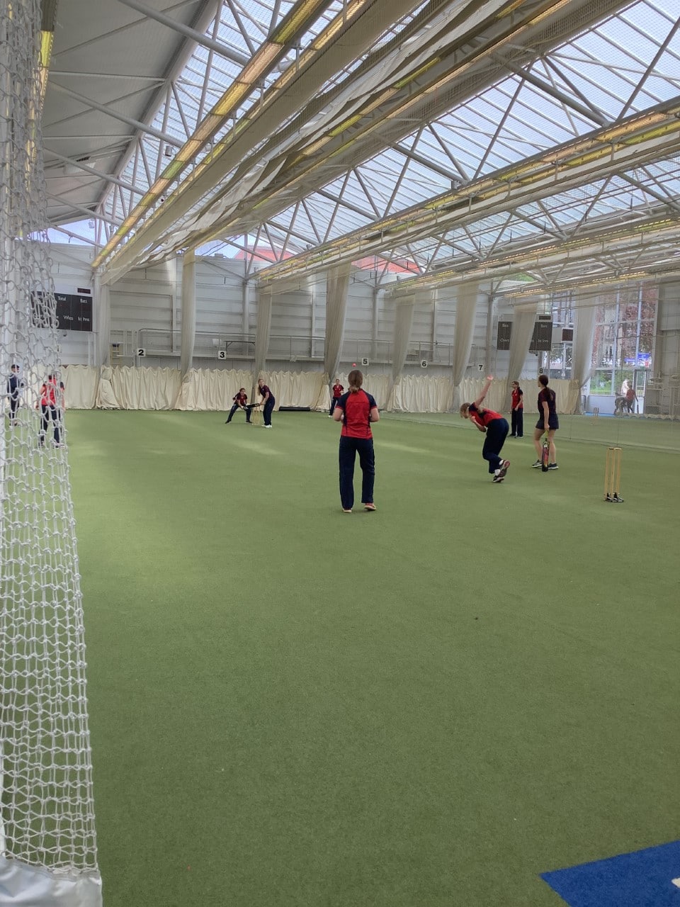 On Monday, the U15 girls travelled to Edgbaston Indoor Cricket Centre for the regional finals. Unbeaten so far in the competition, the girls had high hopes for what they could achieve. In the first group game King’s faced St Helen & St Katherine, a school from Oxford, where they won the toss and elected to bat. Off to a strong start, Bryony G retired on the maximum of 15 runs, with Grace JVV, Frankie B and Fen proceeding to bat well. With the team all out, Bryony came back in to bat as the last man standing, setting a good score to defend. All of the team bowled, with Tilly C and Grace JVV putting in great performances. Having bowled out the opposition, King’s won comfortably.