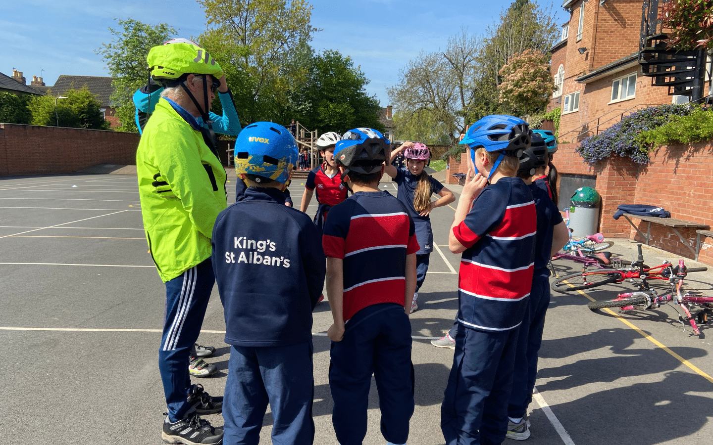 On a gloriously sunny Wednesday, Bikeability returned to King’s St Alban’s. Pupils from each of our two Year 4 cohorts completed a Bikeability course with Mr Martin Addis and Mr Joe Rowe. The main aims of the sessions were to improve the children’s basic cycling skills and help them learn to ride their bikes safely.