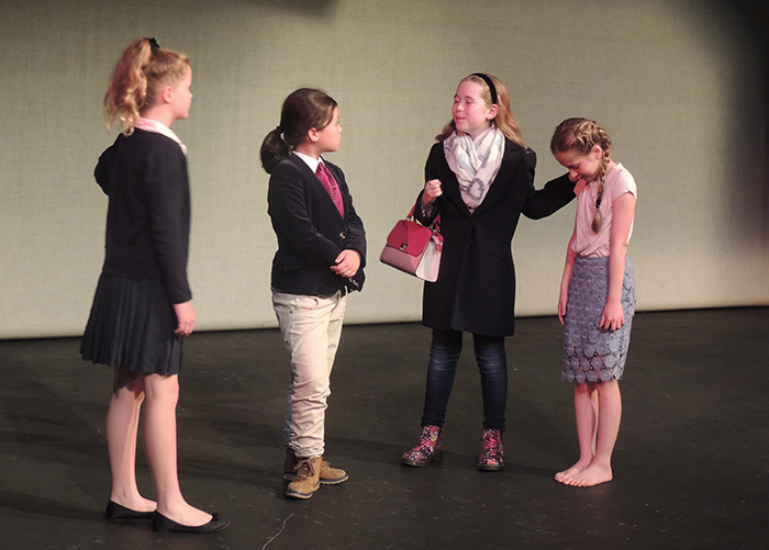 It was a tight schedule, but Drama Club came up with the goods when it mattered with a well-acted and witty performance of ‘The Show’s the Thing’ this week. They performed both to school and parents, and judging by laughter levels in both, they scored direct hits with their comic timing and clarity. The cast were uniformly impressive: fluent, mobile on stage and clearly ‘in the role’. Of particular mention was Olivia Miyoshi-Hankinson’s portrayal of Julian, the hapless director of an argumentative and accident-prone cast, clumsy stage crew and assorted hangers-on. Hers was the pivotal role in the play, and she played it with aplomb! Well done, Drama Club; you were stars!