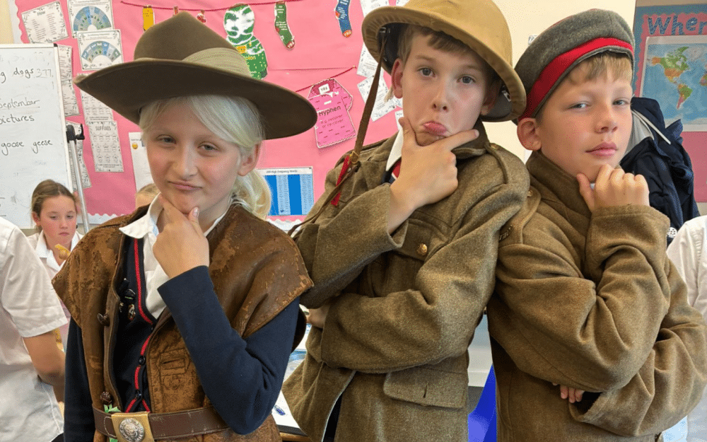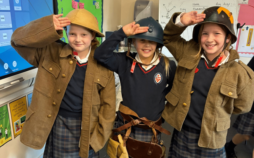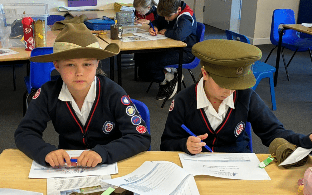 Back in the classroom, the children became historians themselves. Through hands-on investigation of real and replica WW1 artefacts, they dressed up in period clothing, examined primary sources, and tackled historical inquiry questions.